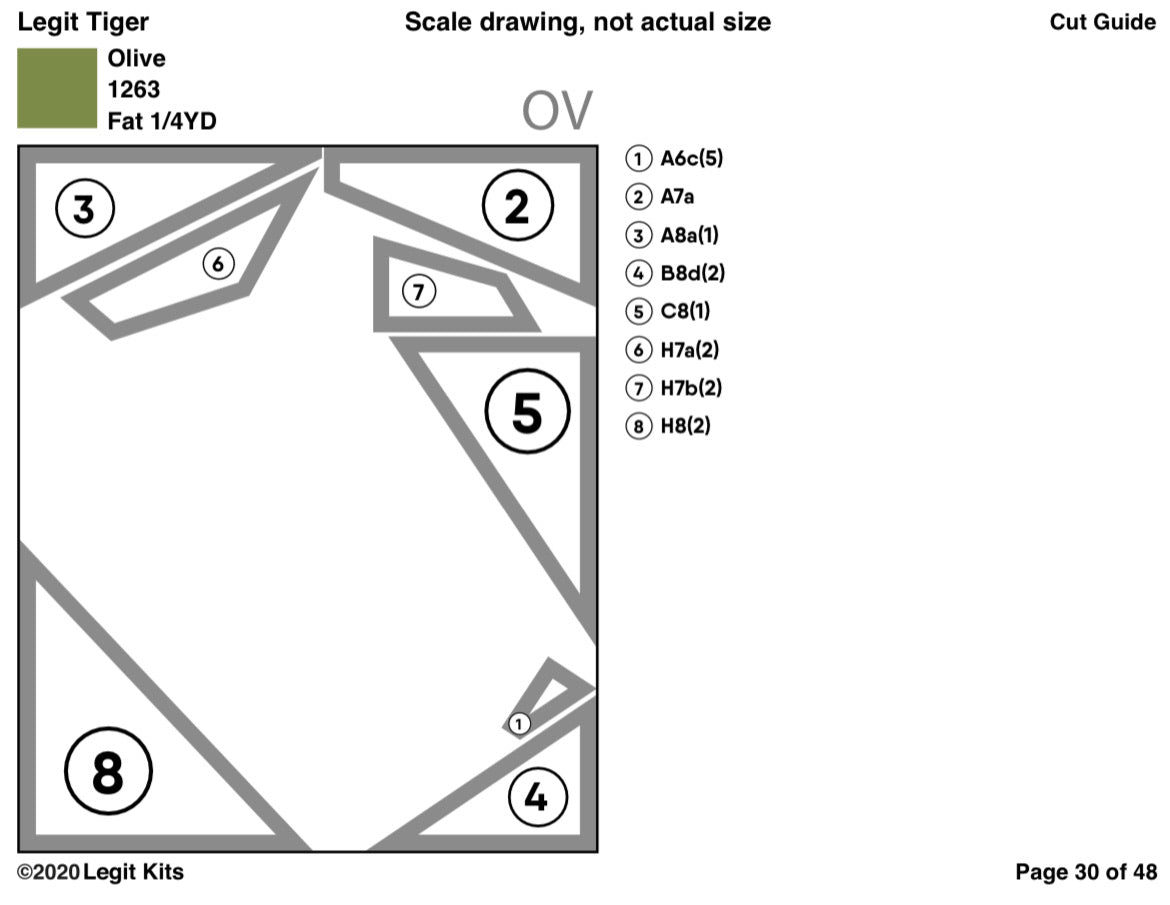 Can you hear it breathing too?  The true king of the jungle analyzes your stare.  Legit Tiger is a premium design with everything a foundation paper piece quilter could want.  This printed pack contains color maps, fabric lists, an assembly guide, and the full pattern printed on foundation paper.  Use your own fabrics to complete this full sized, 60 inch wide by 80 inch tall quilt top.