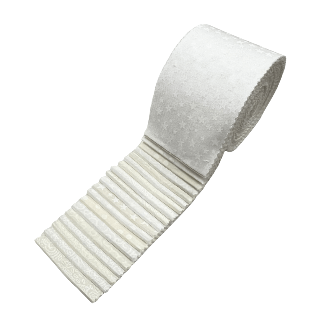 Add a touch of elegance to your next sewing project with our stunning Tone on Tone rolls! Made with high-quality materials, these fabrics are not only stunning to look at, but also durable and long-lasting. This bundle is white on white and white on cream cuts with dots, swirls, paisley, crackle, stars, & vines!